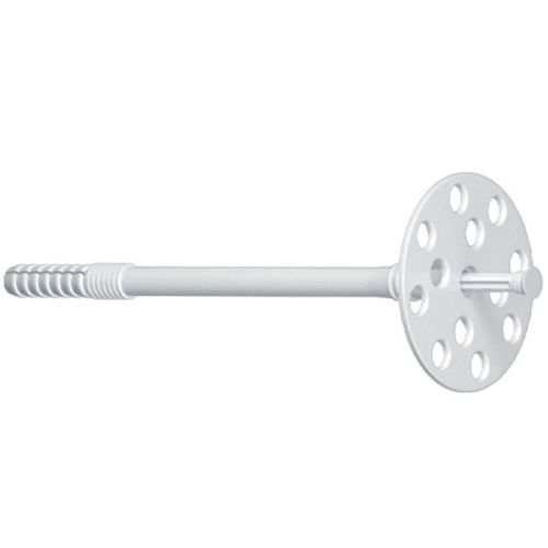 El taco IPD 10 de Apolo MEA con clavo de fibra de vidrio es adecuado para la fijación de paneles que necesitan compresión, como por ejemplo placas de poliestireno. La textura antideslizante de la superficie del disco permite una buena adhesión del yeso. Un diseño del taco resistente al impacto previene que se doble al ser insertado en el agujero con martillo.