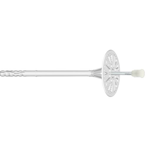 El taco IPD 8 de Apolo MEA con clavo de acero es adecuado para la fijación de paneles que necesitan compresión, como por ejemplo placas de poliestireno. La textura antideslizante de la superficie del disco permite una buena adhesión del yeso. Un diseño del taco resistente al impacto previene que se doble al ser insertado en el agujero con martillo. Homologado CE para aislamientos térmicos al exterior.