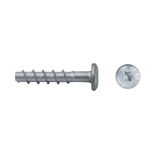 ¿Desea más información de Anclaje tornillo directo a hormigón Ø 6x40 mm, cabeza alomada ancha TX 30, recubrimiento Zn-Al?