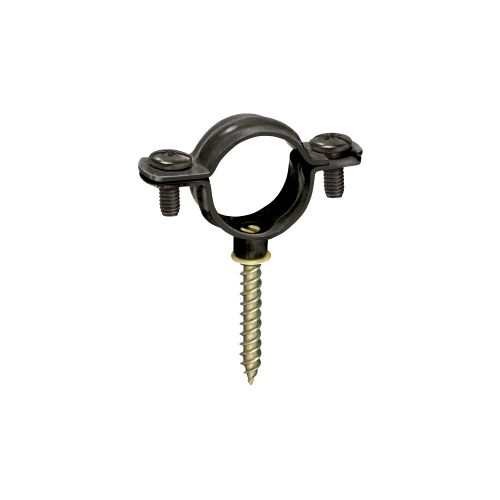Abrazadera APOLO M6 plastificada en negro o amarillo para idenftificar los conductos de gas. Además el plasticado evita la corrosión electrolítica "par galvánico"entre cobre y acero. Tirafondo TF M6x30 incorporado.