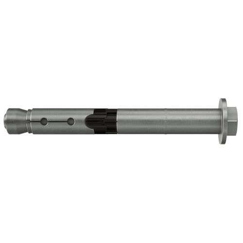 El anclaje de alto rendimiento FH II S de fischer con cabeza hexagonal es un anclaje de manguito de acero inoxidable. El anclaje se utiliza en el montaje pasante rápido. Al apretar el anclaje, el cono se introduce en el manguito de expansión, arriostrándolo contra la pared de la perforación. El anillo de plástico negro impide que el anclaje se gire, absorbiendo el desplazamiento de apriete. De este modo, el componente queda fijado a la base de anclaje. El anclaje de alto rendimiento FH II S de fischer es ideal para la fijación de soportes, estructuras de acero y barandillas en hormigón fisurado y comprimido en exteriores.