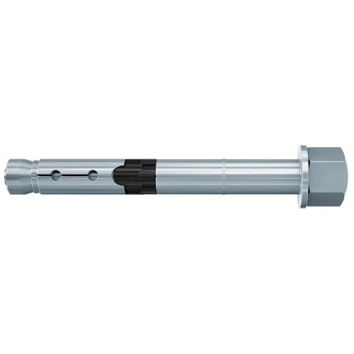 El anclaje de alto rendimiento FH II H de fischer con tuerca de sombrerete es un anclaje de manguito de acero electrogalvanizado. El anclaje se utiliza en el montaje pasante rápido. Al apretar el anclaje, el cono se introduce en el manguito de expansión, arriostrándolo contra la pared de la perforación. El anillo de plástico negro impide que el anclaje se gire, absorbiendo el desplazamiento de apriete. De este modo, el componente queda fijado a la base de anclaje. El anclaje de alto rendimiento FH II H de fischer con tuerca de sombrerete es ideal para la fijación en hormigón fisurado y comprimido de estructuras de acero, máquinas y puertas.