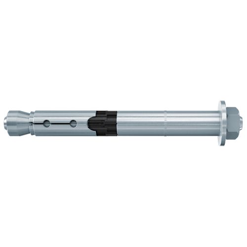 El anclaje de alto rendimiento FH II B de fischer con perno roscado es un anclaje de manguito de acero electrogalvanizado. El anclaje se utiliza en el montaje pasante rápido. Al apretar el anclaje, el cono se introduce en el manguito de expansión, arriostrándolo contra la pared de la perforación. El anillo de plástico negro impide que el anclaje se gire, absorbiendo el desplazamiento de apriete. De este modo, el componente queda fijado a la base de anclaje. El anclaje de alto rendimiento FH II B de fischer con perno roscado es ideal para la fijación de rejillas, estructuras de acero y líneas de cables en hormigón fisurado y comprimido.