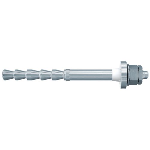 El anclaje Highbond dinámico FHB-A dyn de fischer se fabrica en acero electrogalvanizado. El anclaje de unión de expansión de fuerza controlada se procesa con el anclaje químico FIS HB. Al apretar la tuerca hexagonal se introducen los conos de la varilla roscada en el cuenco del mortero, el cual se tensa contra la pared perforada. El mortero de inyección FIS HB cierra el espacio anular en el componente en el proceso de colocación y garantiza una distribución de la carga óptima. De este modo, se pueden alojar las cargas alternativas y de traviesa dinámicas. El anclaje Highbond dinámico FHB-A dyn de fischer es ideal para fijar en interiores carriles de guía de ascensores, robots de producción, grúas de pórtico y puentes grúa.