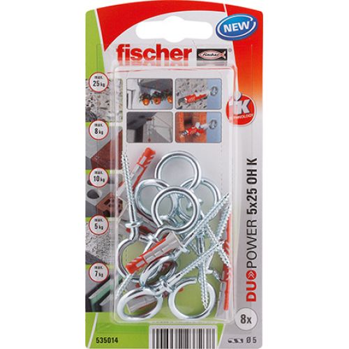 El DUOPOWER de fischer es un taco inteligente de 2 componentes con tres principios de funcionamiento. El taco universal inteligente es ideal para fijaciones en todos los materiales de construcción. Esto permite aplicaciones muy versátiles con sólo un taco. El DUOPOWER de fischer se adapta naturalmente al material y distribuye los máximos valores de carga mediante los tres principios funcionales de bloqueo, expansión y anudado. Esta respuesta tan buena del taco al girar el tornillo ofrece un extra adicional en seguridad. Los DUOPOWER de fischer de 6 x 50, 8 x 65 y 10 x 80 son especialmente apropiados para fijaciones en materiales perforados, hormigón poroso y para puenteados de revoque gracias a su gran profundidad de anclaje.