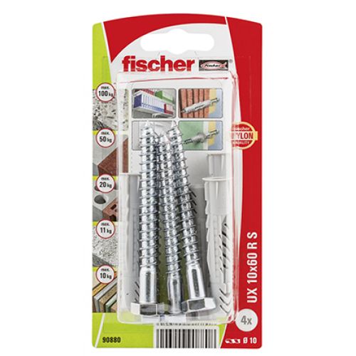 Taco universal Fischer UX 10 x 60 RS K con reborde y tornillo