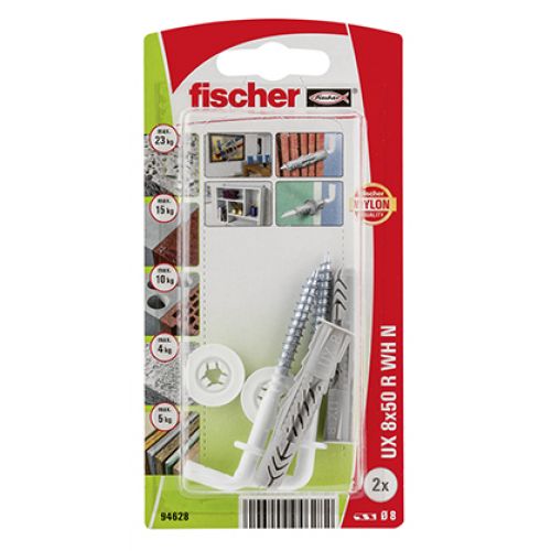 Taco universal fischer UX 8 x 50 WH N K con reborde y alcayata plastificada