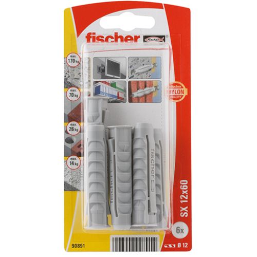 Debido a la expansión por sus 4 costados, la fijación por expansión SX de Fischer transfiere de manera óptima las fuerzas al material de construcción. El nylon de alta calidad usado en su producción y su expansión típica garantizan una conexión segura y permanente. El reborde en la cabeza de la fijación evita que el taco se cuele dentro del orificio del taladro.El taco de expansión SX es la mejor opción para fijar lámparas, instalaciones de baños, armarios ligeros.