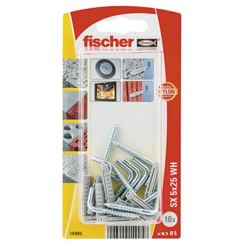 Debido a la expansión por sus 4 costados, la fijación por expansión SX de Fischer transfiere de manera óptima las fuerzas al material de construcción. El nylon de alta calidad usado en su producción y su expansión típica garantizan una conexión segura y permanente. El reborde en la cabeza de la fijación evita que el taco se cuele dentro del orificio del taladro. Las alcayatas suministradas encajan a la perfección con la fijación SX y garantizan una fijación perfecta.