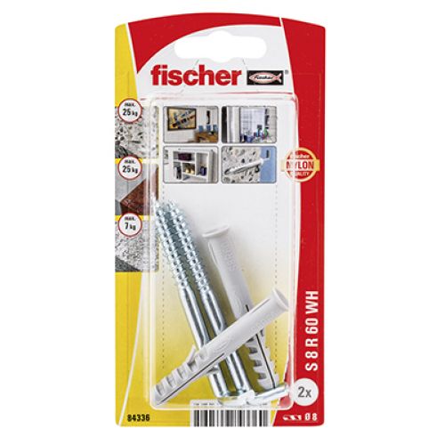 El taco para marcos S 8 RW de fischer se fabrica a partir de Nylon de gran calidad. De este modo, el taco es especialmente robusto en el montaje y garantiza una seguridad duradera. El taco para marco S 8 es adecuado para la fijación en materiales macizos y, gracias a su longitud, es ideal para puentear capas de revoque de máx. 1cm de grosor. El gancho de ángulo suministrado está especialmente adaptado al taco, garantizando así unos elevados valores de sujeción.