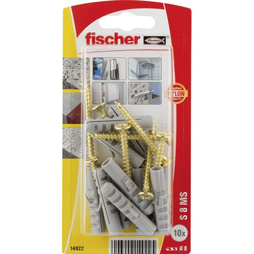 El taco de expansión S de fischer es el original. La fijación de plástico está fabricado en Nylon de gran calidad y es especialmente robusto. El taco de expansión S de fischer se oferta para fijaciones con un diámetro de la perforación de 4 a 20 mm y, por lo tanto, se puede utilizar con gran versatilidad. La estrecha geometría del taco facilita el montaje. La característica protección contra el giro impide que el taco gire al girar el tornillo. Para fijar el objeto pueden utilizarse tornillos para madera o madera aglomerada. El taco de expansión S de fischer es ideal para fijaciones de objetos ligeros en hormigón y mampostería de ladrillo de hormigón macizo.