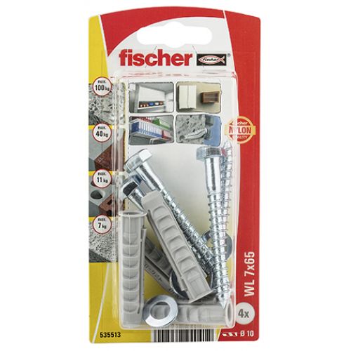 El taco de expansión S de fischer es el original. La fijación de plástico está fabricado en Nylon de gran calidad y es especialmente robusto. El taco de expansión S de fischer se oferta para fijaciones con un diámetro de la perforación de 4 a 20 mm y, por lo tanto, se puede utilizar con gran versatilidad. La estrecha geometría del taco facilita el montaje. La característica protección contra el giro impide que el taco gire al girar el tornillo. Para fijar el objeto pueden utilizarse tornillos para madera o madera aglomerada. El taco de expansión S de fischer es ideal para fijaciones de objetos ligeros en hormigón y mampostería de ladrillo de hormigón macizo.
