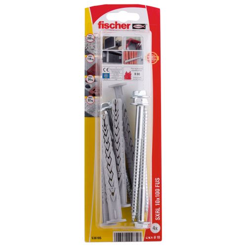 La fijación para marcos SXRL-FUS de fischer está homologada con el tornillo de cabeza hexagonal de fischer con arandela incorporada y alojamiento Bit T40 integrado para fijaciones múltiples de sistemas no portantes en mampostería, hormigón y hormigón poroso. En la mampostería perforada, las dos zonas de expansión del taco conducen la fuerza uniformemente, en el hormigón poroso y en los materiales macizos estas se unen a un elemento de expansión largo. Con el tornillo de seguridad de acero electrogalvanizado, la fijación de marco es ideal para fijaciones de sistemas de submarcos de fachadas, techos y tejados de metal.