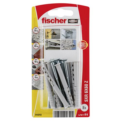 La fijación de marco SXR-Z de fischer es un taco de Nylon de gran calidad con tornillo de cabeza avellanada con un alojamiento de ranura en cruz PZ-Bit. Gracias a la geometría de taco especial, la SXR se puede utilizar en materiales macizos y perforados. Gracias a la profundidad de anclaje baja de sólo 30 mm, la fijación de marco se puede procesar con especial economía. La fijación de marco SXR-Z de fischer es ideal para la fijación de estructuras de madera, armarios y luces.