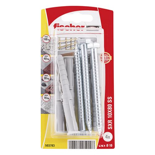 El taco largo SXR-SS de Fischer es una fijación compuesta por un tornillo de cabeza hexagonal y el nylon de alta calidad de Fischer. Debido a la geometría especial del taco, el SXR puede usarse tanto en material sólido como en material hueco. Gracias a la poca profundidad de anclaje de solo 50 mm, la fijación del bastidor puede manejarse de una manera especialmente versatil para la fijación múltiple de sistemas sin carga. Se recomienda especialmente el SXR-SS con cabeza hexagonal y arandela moldeada para la fijación de construcciones metálicas.