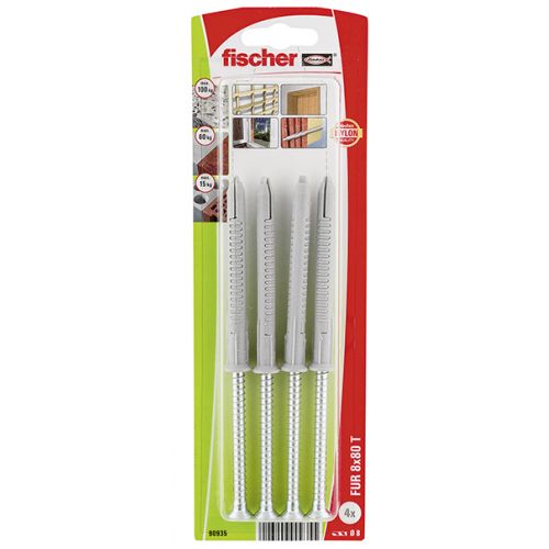 La fijación de marco FUR-T de fischer se compone de un manguito de taco de Nylon de gran calidad y un tornillo de cabeza avellanada de acero electrogalvanizado. La FUR-T se utiliza en el montaje pasante rápido. Al girar el tornillo, las laminillas se expanden de forma uniforme en el material macizo contra la pared de la perforación. En materiales perforados, las laminillas se expanden en el refuerzo de piedra, creando un rebaje en el hueco. De este modo, la fijación de marco FUR de fischer es adecuada para fijar de forma segura ventanas, instalaciones en interiores, portones y puertas en todos los materiales.