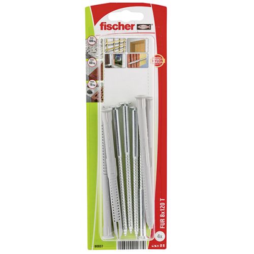 La fijación de marco FUR-T de fischer se compone de un manguito de taco de Nylon de gran calidad y un tornillo de cabeza avellanada de acero electrogalvanizado. La FUR-T se utiliza en el montaje pasante rápido. Al girar el tornillo, las laminillas se expanden de forma uniforme en el material macizo contra la pared de la perforación. En materiales perforados, las laminillas se expanden en el refuerzo de piedra, creando un rebaje en el hueco. De este modo, la fijación de marco FUR de fischer es adecuada para fijar de forma segura ventanas, instalaciones en interiores, portones y puertas en todos los materiales.