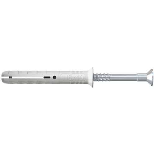 El Hammerfix N-S de fischer con cabeza avellanada se compone de un taco de Nylon de gran calidad y un tornillo de clavo inoxidable. Ya están montados para un montaje rápido. El taco de golpe se introduce a través del componente en el montaje pasante rápido. Al golpear el tornillo clavo, el manguito del taco se expande y se ancla de forma segura al componente. El Hammerfix N-S de fischer con cabeza avellanada es ideal para la fijación de estructuras de madera, fijaciones para la pared y para revoque, abrazaderas para cables e isofónicas en todos los componentes en exteriores.