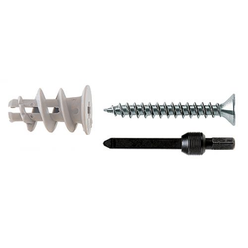 La fijación para yeso GK S de Fischer está hecha de nylon de alta calidad. En el momento de realizar la instalación, el taco se enrosca mediante el útil de inserción GK (incluido en el blister) con un atornillador inhalambrico de modo que quede al ras de la superficie de yeso. En tableros de hasta 15 mm no es necesario una perforación preeliminar. El GK S de Fischer está equipado con tornillos con rosca para madera. También puede utilizarse en montajes de cuadros, lámparas e instalaciones eléctricas.