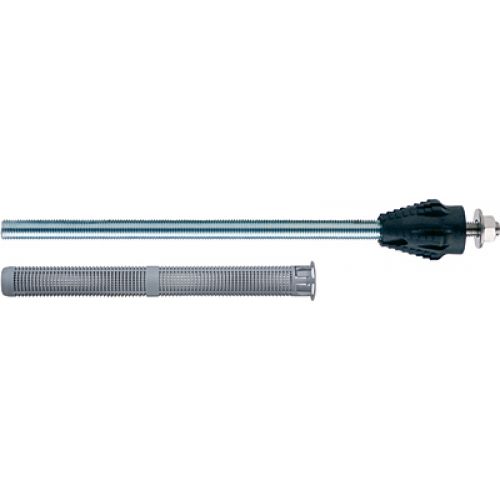 La instalación a distancia Thermax de fischer es una solución para la fijación en paredes exteriores sin puentes térmicos en sistemas integrales de aislamiento térmico. El sistema se compone de una varilla roscada especial de acero electrogalvanizado con un cono reforzado con fibra de vidrio, espárragos roscados y manguitos de anclaje para la fijación en piedra perforada. En combinación con los morteros de inyección de alto rendimiento FIS EM Plus, FIS V, FIS SB y FIS GREEN de fischer, el sistema está homologado para numerosos materiales de construcción. La varilla roscada con el cono reforzado con fibra de vidrio se fresa autoperforante a través del revoque en el material aislante. La varilla roscada se ancla al manguito de anclaje con un mortero de inyección en el material de construcción. El cono en la cabeza de la varilla roscada rompe el puente térmico y aloja el espárrago roscado de acero inoxidable para la fijación exterior. El Thermax fija cargas pesadas como toldos, sistemas de aire acondicionado y antenas parabólicas en hormigón, hormigón poroso y mampostería de piedra perforada y ladrillo de hormigón macizo.