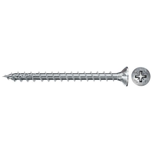 El tornillo de aglomerado fischer Power-Fast FPFII RZF es un tornillo cincado con cabeza avellanada, engarce PZ y rosca total. La pequeña cabeza avellanada con una ligera curvatura hace que el tornillo sea visualmente atractivo y permite una instalación a ras. El tornillo de aglomerado con rosca completa ofrece una mayor resistencia a la extracción debido a la mayor longitud de la rosca.