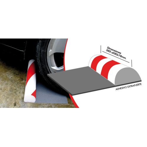 INFO: Paragolpes de freno de rueda para suelo con adhesivo extrafuerte de gran calidad y buena visibilidad gracias su color rojo y blanco.