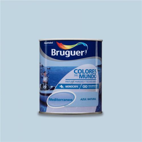 Pintura plástica de interior Mediterráneo Azul Intermedio Bruguer 0,750L