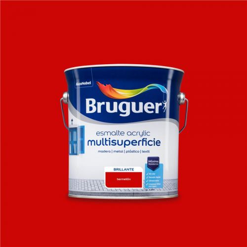 Bruguer Esmalte Acryllic Multisuperficie Brillante, es una pintura esmalte exterior o interior al agua para decorar y proteger toda clase de superficies de madera, hierro, yeso o cemento en exteriores o interiores. Ultralavable, sin olor. No amarillea, gran flexibilidad, gran adherencia y elasticidad. Su exclusiva fórmula al agua, Diamond Technology, proporciona un acabado de alta calidad, excelente resistencia y durabilidad. Fácil de aplicar: cubrición a una o tres manos, no salpica, listo al uso, se aplica con brocha, rodillo o pistola. Secado al tacto 30min, repintado 6 horas. Esmalte Brillante es ideal para decorar y proteger toda clase de superficies.