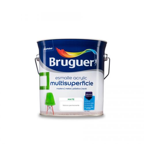 Bruguer Esmalte Acryllic Multisuperficie Mate, es una pintura esmalte exterior o interior al agua para decorar y proteger toda clase de superficies de madera, hierro, yeso o cemento en exteriores o interiores. Ultralavable, sin olor. No amarillea, gran flexibilidad, gran adherencia y elasticidad. Su exclusiva fórmula al agua, Diamond Technology, proporciona un acabado de alta calidad, excelente resistencia y durabilidad. Fácil de aplicar: cubrición a una o tres manos, no salpica, listo al uso, se aplica con brocha, rodillo o pistola. Secado al tacto 30min, repintado 6 horas. Esmalte Mate es ideal para decorar y proteger toda clase de superficies.
