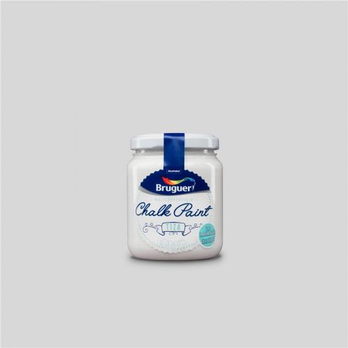 Para la realización de trabajos creativos de decoración sobre madera, metal, piedra, arcilla, yeso, plástico, etc. Con los complementos de la gama (el barniz y la cera Chalk Paint) se pueden conseguir una amplia variedad de proyectos decorativos. Chalk Paint, pintura mate interior a base de agua, sin olor de acabado tipo tiza para todo tipo de proyectos de renovación y decoración. Multifuperficie y de secado rápido. Efecto empolvado. Fácil de aplicar: una o dos manos, brocha o rodillo. Fácil lijado. Secado al tacto 30min. Para lijar, esperar 1-2h, repintado 2 horas. Remover bien todo el contenido del envase hasta homogeneizarlo completamente. Obtén un efecto envejecido con la Cera Chalk Paint Bruguer aplicándola solamente en zonas estratégicas de una superficie. Para proteger superficies que van a tener mucho uso, aplicar una mano de Barniz Mate Chalk Paint Bruguer para aporta un extra de protección.