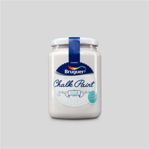 Para la realización de trabajos creativos de decoración sobre madera, metal, piedra, arcilla, yeso, plástico, etc. Con los complementos de la gama (el barniz y la cera Chalk Paint) se pueden conseguir una amplia variedad de proyectos decorativos. Chalk Paint, pintura mate interior a base de agua, sin olor de acabado tipo tiza para todo tipo de proyectos de renovación y decoración. Multifuperficie y de secado rápido. Efecto empolvado. Fácil de aplicar: una o dos manos, brocha o rodillo. Fácil lijado. Secado al tacto 30min. Para lijar, esperar 1-2h, repintado 2 horas. Remover bien todo el contenido del envase hasta homogeneizarlo completamente. Obtén un efecto envejecido con la Cera Chalk Paint Bruguer aplicándola solamente en zonas estratégicas de una superficie. Para proteger superficies que van a tener mucho uso, aplicar una mano de Barniz Mate Chalk Paint Bruguer para aporta un extra de protección.
