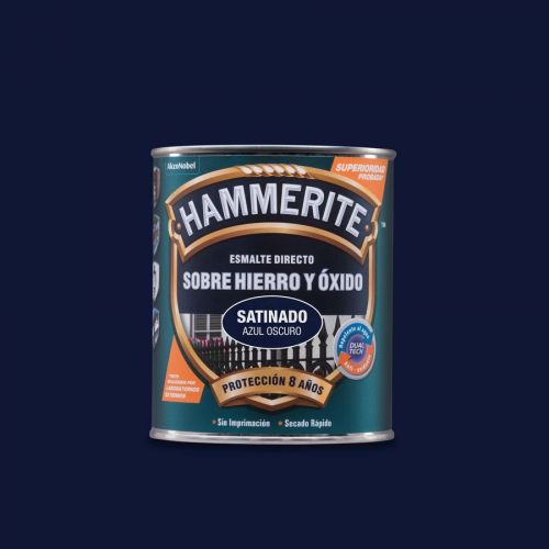 Hammerite acabado Liso Satinado es un esmalte antioxidante que se aplica directamente sobre hierro y oxido, indicado para la protección del metal de la corrosión y el óxido. Antioxidante recomendado para todo tipo de superficies de hierro y acero en exterior. Su exclusiva tecnología Dual Tech, impide la entrada de la humedad y bloquea el proceso de oxidación. Su fórmula 3 en 1, actúa como imprimación, fondo protector y acabado decorativo en un solo producto. La garantía de Hammerite es de 8 años de protección óptima contra la corrosión y el óxido. Ideal para muebles, rejas, barandillas y otros objetos de hierro ubicados en el exterior. Secado al tacto 1h, repintado 4h.