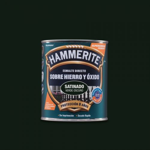 Hammerite acabado Liso Satinado es un esmalte antioxidante que se aplica directamente sobre hierro y oxido, indicado para la protección del metal de la corrosión y el óxido. Antioxidante recomendado para todo tipo de superficies de hierro y acero en exterior. Su exclusiva tecnología Dual Tech, impide la entrada de la humedad y bloquea el proceso de oxidación. Su fórmula 3 en 1, actúa como imprimación, fondo protector y acabado decorativo en un solo producto. La garantía de Hammerite es de 8 años de protección óptima contra la corrosión y el óxido. Ideal para muebles, rejas, barandillas y otros objetos de hierro ubicados en el exterior. Secado al tacto 1h, repintado 4h.