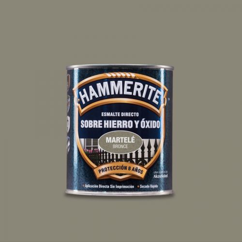Hammerite acabado Martelé es un esmalte antioxidante que se aplica directamente sobre hierro y oxido, indicado para la protección del metal de la corrosión y el óxido. Antioxidante recomendado para todo tipo de superficies de hierro y acero en exterior. Su exclusiva tecnología Dual Tech, impide la entrada de la humedad y bloquea el proceso de oxidación. Su fórmula 3 en 1, actúa como imprimación, fondo protector y acabado decorativo en un solo producto. La garantía de Hammerite es de 8 años de protección óptima contra la corrosión y el óxido. Ideal para muebles, rejas, barandillas y otros objetos de hierro ubicados en el exterior. Secado al tacto 1h, repintado 4h