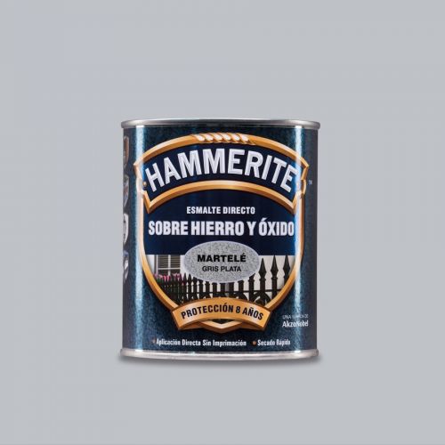 Hammerite acabado Martelé es un esmalte antioxidante que se aplica directamente sobre hierro y oxido, indicado para la protección del metal de la corrosión y el óxido. Antioxidante recomendado para todo tipo de superficies de hierro y acero en exterior. Su exclusiva tecnología Dual Tech, impide la entrada de la humedad y bloquea el proceso de oxidación. Su fórmula 3 en 1, actúa como imprimación, fondo protector y acabado decorativo en un solo producto. La garantía de Hammerite es de 8 años de protección óptima contra la corrosión y el óxido. Ideal para muebles, rejas, barandillas y otros objetos de hierro ubicados en el exterior. Secado al tacto 1h, repintado 4h