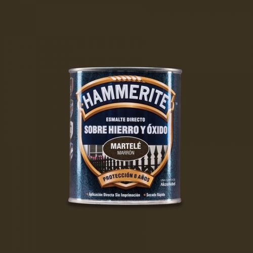 Hammerite acabado Martelé es un esmalte antioxidante que se aplica directamente sobre hierro y oxido, indicado para la protección del metal de la corrosión y el óxido. Antioxidante recomendado para todo tipo de superficies de hierro y acero en exterior. Su exclusiva tecnología Dual Tech, impide la entrada de la humedad y bloquea el proceso de oxidación. Su fórmula 3 en 1, actúa como imprimación, fondo protector y acabado decorativo en un solo producto. La garantía de Hammerite es de 8 años de protección óptima contra la corrosión y el óxido. Ideal para muebles, rejas, barandillas y otros objetos de hierro ubicados en el exterior. Secado al tacto 1h, repintado 4h