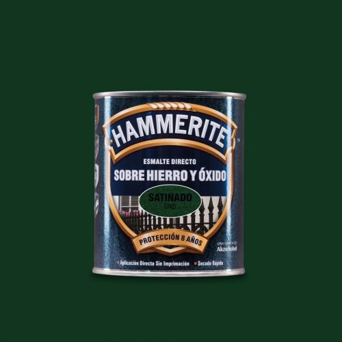 Hammerite acabado Martelé es un esmalte antioxidante que se aplica directamente sobre hierro y oxido, indicado para la protección del metal de la corrosión y el óxido. Antioxidante recomendado para todo tipo de superficies de hierro y acero en exterior. Su exclusiva tecnología Dual Tech, impide la entrada de la humedad y bloquea el proceso de oxidación. Su fórmula 3 en 1, actúa como imprimación, fondo protector y acabado decorativo en un solo producto. La garantía de Hammerite es de 8 años de protección óptima contra la corrosión y el óxido. Ideal para muebles, rejas, barandillas y otros objetos de hierro ubicados en el exterior. Secado al tacto 1h, repintado 4h