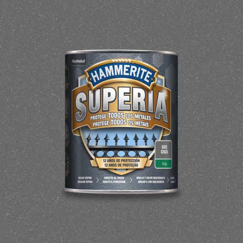 Hammerite Superia Forja Gris 750 mL es la nueva generación en esmalte antioxidante al agua, formulado para aplicarse directo al óxido y sobre cualquier metal sin imprimación. Tiene una protección avanzada contra la corrosión de hasta 12 años en condiciones climáticas adversas y frente a la radiación UV. Con “colour lock technology”: acabado y color inalterable. Alta resistencia a golpes y ralladuras. Gracias a su acabado forja, da un aspecto liso forja a barandillas, rejas, verjas y todos los objetos de cualquier tipo de metal principalmente en exterior y expuestos a la intemperie y al sol. Excelente adherencia sobre hierro, hierro oxidado, acero, metal galvanizado, aluminio. Útiles de aplicación brocha, rodillo o pistola. Fácil aplicación en todos los metales, secado rápido, dos capas en un día. Tiempo de repintado 4 horas sin ningún límite, con pistola 1 hora entre capa y capa. Rendimiento de 7,5 m²/L por capa. El producto es base agua y ayuda a proteger el medio ambiente, además de brindar una fácil limpieza de útiles con agua y jabón. Listo para su uso. Disponibles en negro, gris, marrón. No es recomendarle mezclar colores.