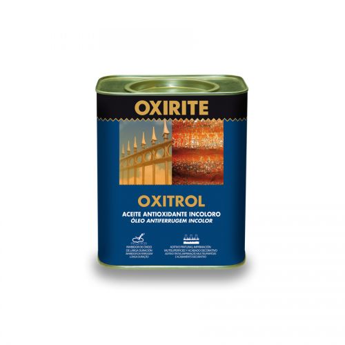 Oxirite Oxitrol es un aceite de secado al aire de uso versátil, altamente penetrante y consolidante del óxido. Se puede usar solo, como inhibidor de óxido, o como aditivo para pintura. Cuando se emplea solo, proporciona un acabado resistente. Durante la aplicación y el secado elimina el exceso de humedad y aire y los desplaza del metal oxidado. Mediante este efecto y por su especial formulación, la oxidación en el metal se ve frenada. Añadido a cualquier pintura base aceite proporciona un mayor tiempo abierto y una mayor fluidez, mejorando la brochabilidad y nivelación. Además, crea una adhesión más fuerte y, al contrario de los diluyentes que pueden perjudicar la pintura, mantiene la calidad propia de la misma sin afectar a su apariencia o al tiempo de secado. Útiles de aplicación brocha, pistola o rodillo. Limpieza con disolvente Oxirite o White Spirit. Secado al tacto 12 horas, repintado 24-48 horas. Rendimiento de 8-12 m²/L (aproximadamente por mano).