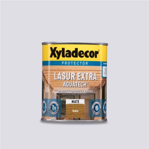 Xyladecor Lasur Extra Mate Aquatech es un protector o lasur para madera exterior en base agua. Protege y realza las vetas de la madera natural. Es un producto poro abierto, de acabado mate, que ofrece protección duradera de hasta 6 años frente al sol y lluvia. Recomendado para vallas, pérgolas y celosías. Acabado perfecto y natural, sin olor de fácil aplicación. Secado al tacto 4h, segunda capa 5h. Rendimiento hasta 16m²/litro por capa, en superficies lisas con una porosidad media.
