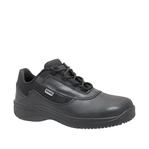 Zapato de seguridad ergonómico fabricado en piel flor natural transpirable con tratamiento para repeler líquidos y textil Cordura transpirable e hidrofugado.