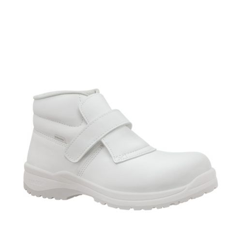 Bota en microfibra blanca, antibacterias, ergonómica y con cierre ajustable para un rápido calce-descalce. Especialmente destinada a su uso por la industria alimentaria, limpieza, laboratorios, sanitario, etc.