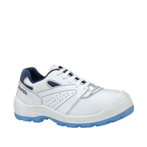 Zapato de seguridad tipo deportivo color blanco, fabricado en materiales de resistencia y durabilidad extraordinaria. Incorpora perforaciones laterales que favorecen la aireación del pie.