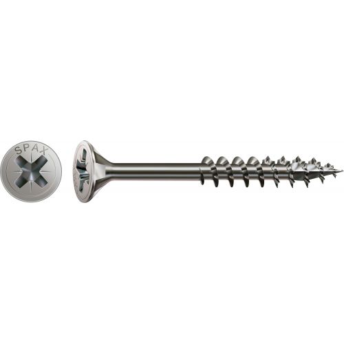 Tornillo de acero inoxidable, 5 x 100 mm, 100 unidades, Rosca parcial, Cabeza plana, Ranura en cruz Z2, 4CUT, Acero inoxidable A2