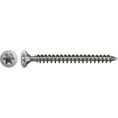 Tornillo de acero inoxidable, 10 x 160 mm, 50 unidades, Rosca completa, Cabeza plana, T-STAR plus T50, Punta CUT, Acero inoxidable A4