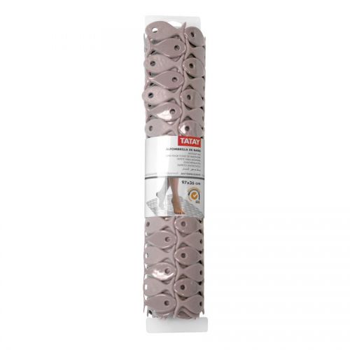 Alfombra fabricada en PVC, combina acabado brillante y satinado; muy práctica y agradable al tacto. Forma rectangular, medidas 97X36. Dotada con 115 ventosas profundas que refuerzan su adherencia. Certificación SGS, normativa BS8445