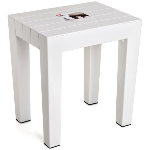 Banqueta multiusos fabricada en plástico: Banqueta rectangular fabricada en polipropileno, acabado efecto madera, apta para uso interior y exterior.