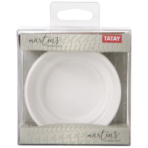 Jabonera ceramica blanca, redonda, sobremesa o mural, con el soporte pared polivalente de venta por separado