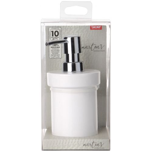 Dosificador jabón en ceramica blanca: Dosificador jabón, diseño cilíndrico, valvula cromada