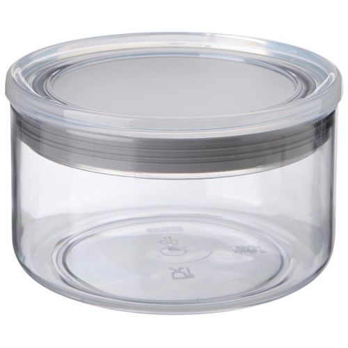 Bote cocina cilíndrico, cuerpo transparente y tapa plana translúcida con junta de color gris. Libre de BpA, hermético.